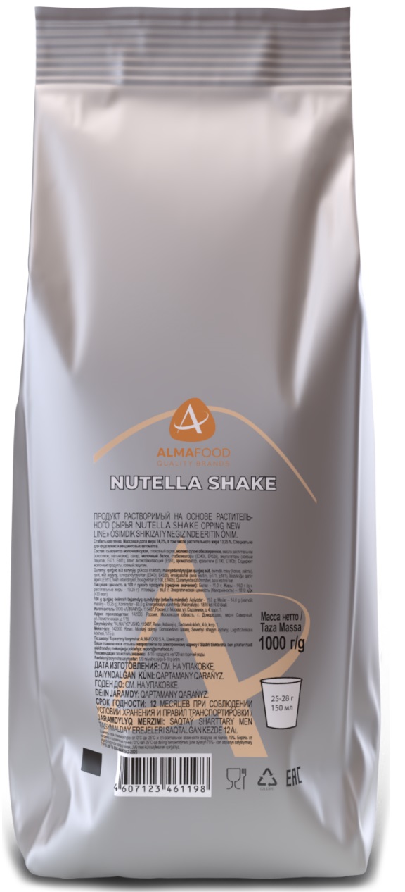 Молочный коктейль «Nutella Shake» - это любимый многими с детства напиток приготовленный на основе сухого молока и ароматизаторов. Молочный коктейль прекрасно подходит для приготовления десертов в вендинговых автоматах и автоматических кофемашинах. Он уже содержит в себе все необходимые компоненты для приготовления нежного молочного коктейля. Этот уникальный продукт имеет хорошую сыпучесть, низкую гигроскопичность и хорошую растворимость, что позволяет ему быстро смешиваться в миксере автомата и давать устойчивую пенку. Может употребляться в горячем и холодном видах.